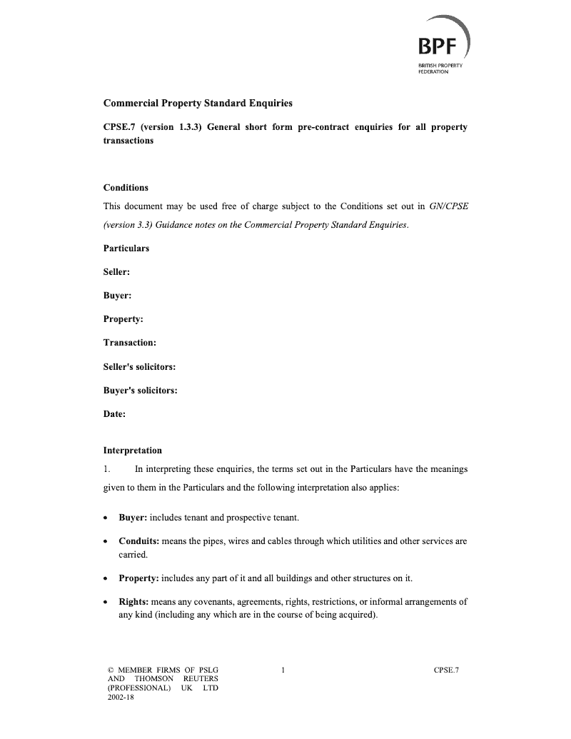 General Short Form Pre-Contract Enquiries for all Property Transactions (Version 1.3.3)
