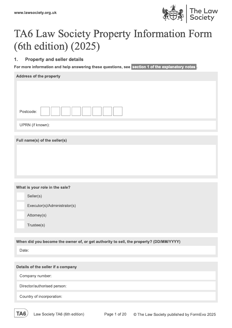 Law Society Property Information Form (6th edition) (2025) - electronic signature available