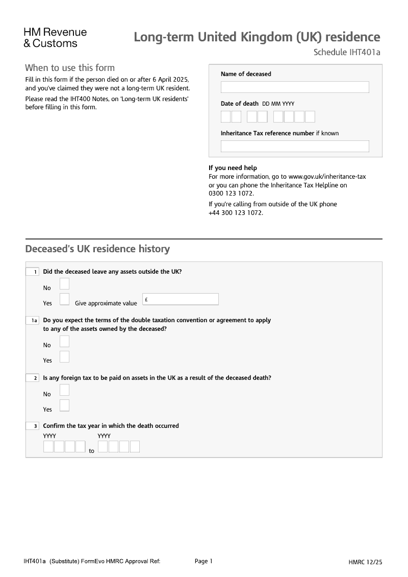 Long-term United Kingdom (UK) residence (Schedule IHT401a)